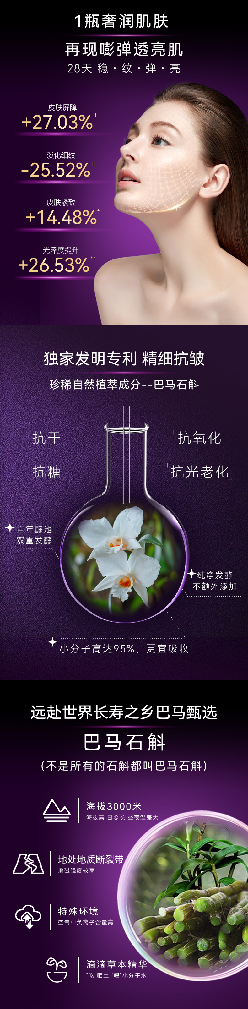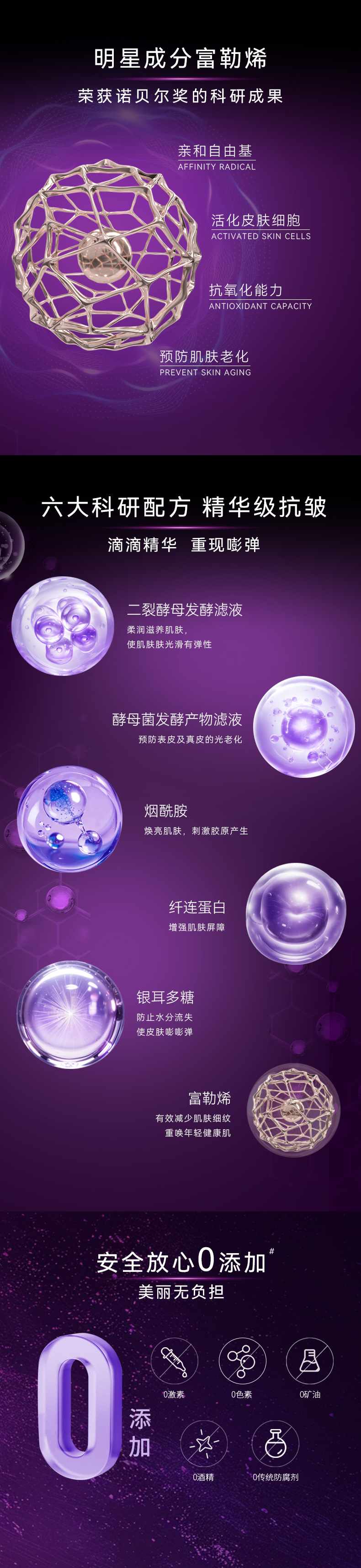 轻盈水润质地搭配舒润柔滑的质感,一抹顺滑不粘腻,层层沁润,亲肤好吸收,润而不腻,肌肤清爽无负担;添加多重保湿因子银耳多糖和透明质酸钠,内外补水+锁水,深层滋润肌肤令肌肤水润饱满,缓解肌肤干燥,强韧肌肤屏障;珍贵成分富勒烯搭配专利抗老成分乙酰基六肽-8,有效帮助减少肌肤细纹,提高肌肤弹性,延缓肌肤老化,充盈肌肤,拯救面部松弛,塑造年轻肌理;