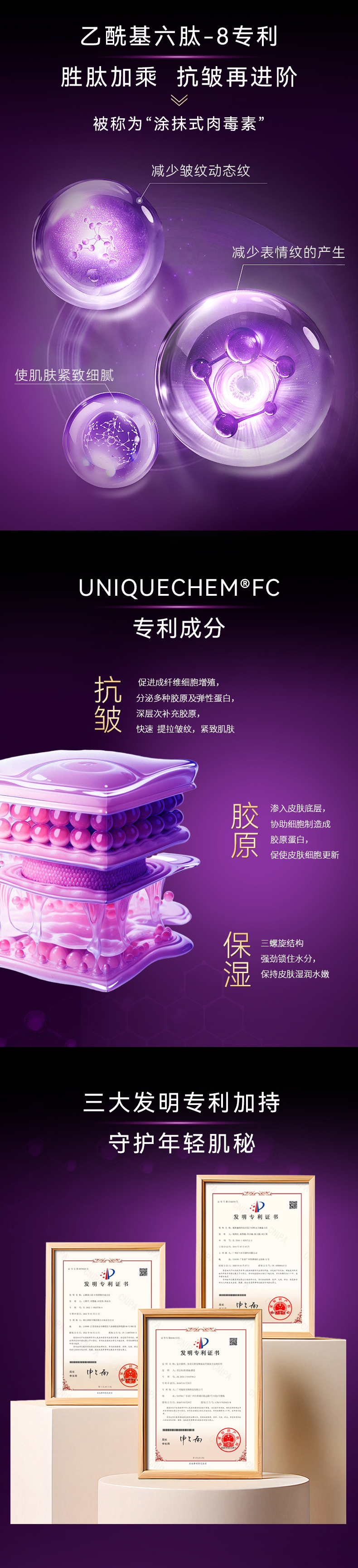 轻盈水润质地搭配舒润柔滑的质感,一抹顺滑不粘腻,层层沁润,亲肤好吸收,润而不腻,肌肤清爽无负担;添加多重保湿因子银耳多糖和透明质酸钠,内外补水+锁水,深层滋润肌肤令肌肤水润饱满,缓解肌肤干燥,强韧肌肤屏障;珍贵成分富勒烯搭配专利抗老成分乙酰基六肽-8,有效帮助减少肌肤细纹,提高肌肤弹性,延缓肌肤老化,充盈肌肤,拯救面部松弛,塑造年轻肌理;